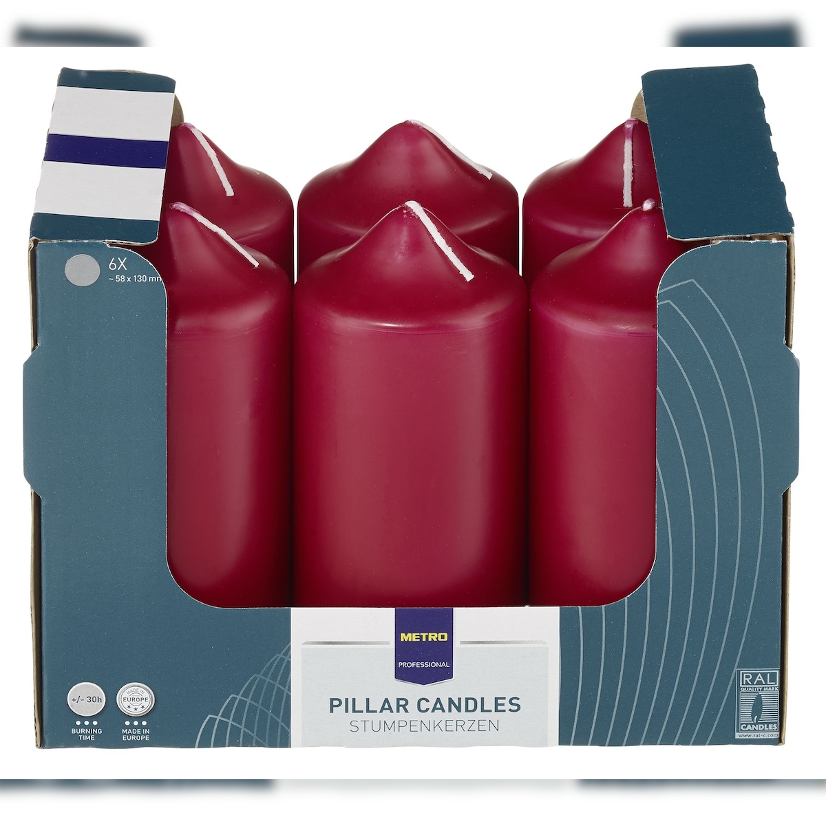 METRO Professional Stumpenkerzen, Paraffin, 6.8 x 13 cm, ca. 40 Std., rot, 6 Stück