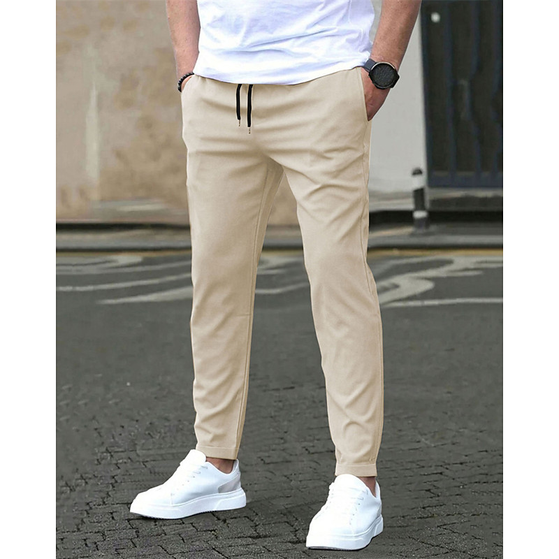 Men's Trousers Chinos Pocket Elastic Waist Drawstring Plain Comfort Formal Party Work Fashion Classic Style Black Light Green Micro-elastic
