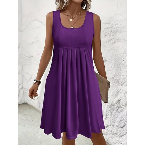 Per donna Mini Abito Abito Estivo Casual Quotidiano Vestibilità comoda Semplice Senza Maniche Collo a U Nero Blu reale Viola Verde Estate