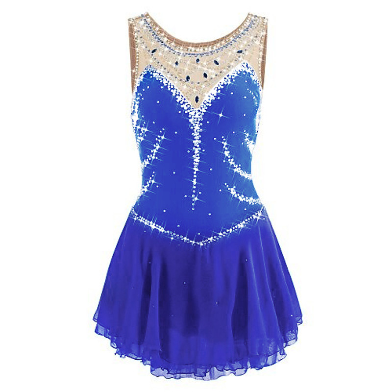 Figure Skating Costumes For Adults And Children Customized With Colored Diamonds Blue Spandex Mesh Grading Performance Costumes Competition Training Gradient Rhinestone Dresses Performance Costum