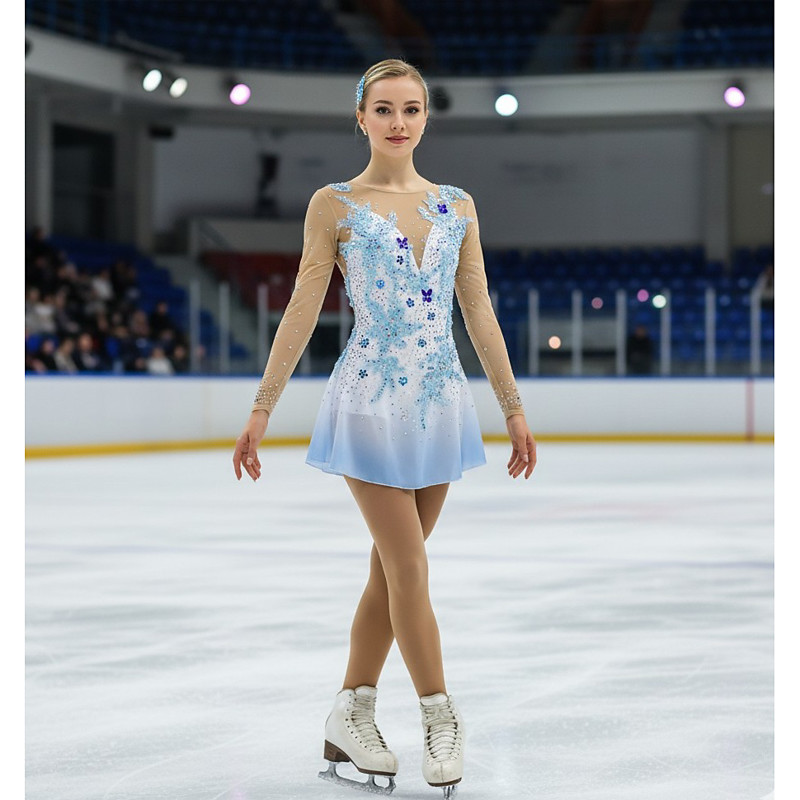 Figure skating costumes for adults and children customized blue spandex mesh grading performance costumes competition training rhinestone women's skirts performance costumes