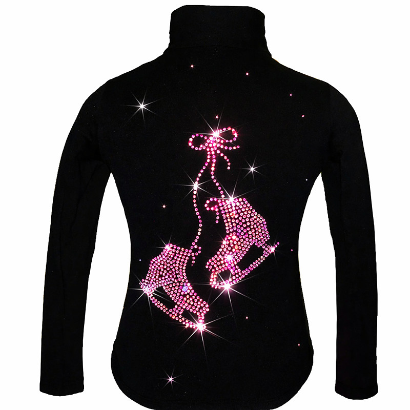 Figure Skating Fleece Jacket Women's Girls' Ice Skating Jacket Top Black Pink Blue Stretchy Training Competition Skating Wear Thermal Warm Crystal / Rhinestone Long Sleeve Ice Skating Figure Skating