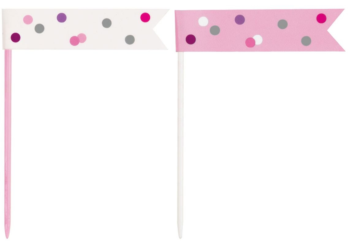 6 glitzer Flaggen Picker rosa & silber