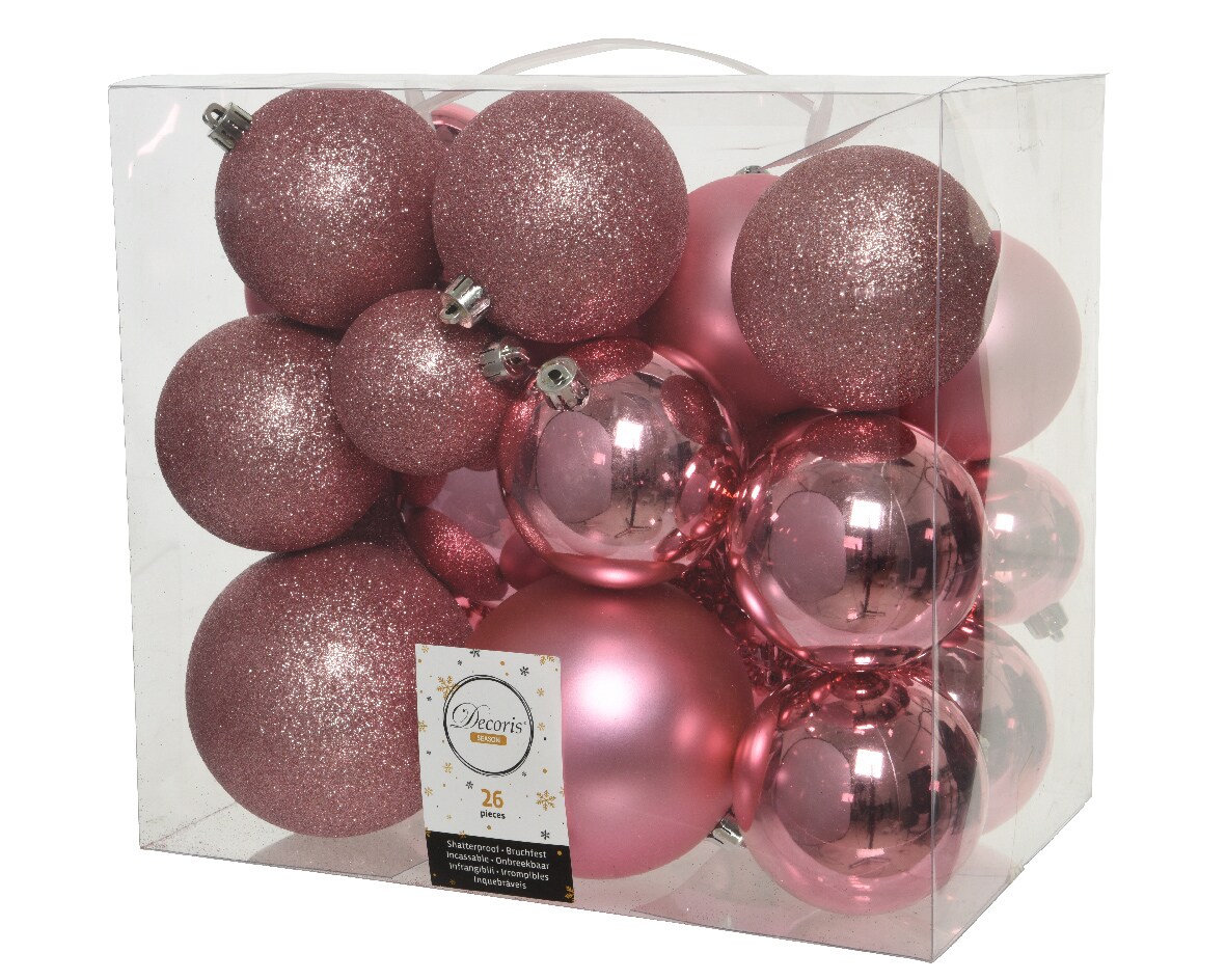 26 Weihnachtskugeln 6-10cm Kunststoff Christbaumkugeln Weihnachtsbaum rosa pink
