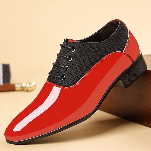 scarpe brogue oxford vintage da uomo – similpelle tricolore nera, rossa e gialla con dettagli classici a punta, perfette per eventi formali o a tema retrò