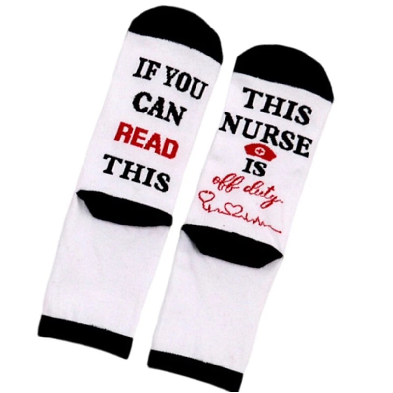 If You Can Read This Off-Duty Nurse Socks Funny Jacquard Novelty Crew Socks for Nurses, Cozy Gift Socks for Work Break, Night Shift, Birthday, Christmas