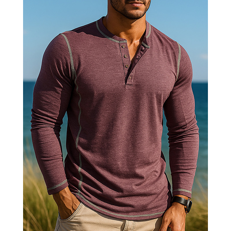 Men's Casual Shirt Hiking top Henley Shirt Long Sleeve Top Outdoor Breathable Polyester Black White Red Tennis Golf Running