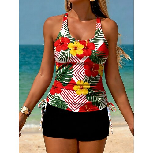 Per donna Plus Size Costumi da bagno Tankini 2 pezzi Vestito da spiaggia Costume da bagno 2 pezzi Estate Floreale Con bretelline Senza maniche Costumi da bagno