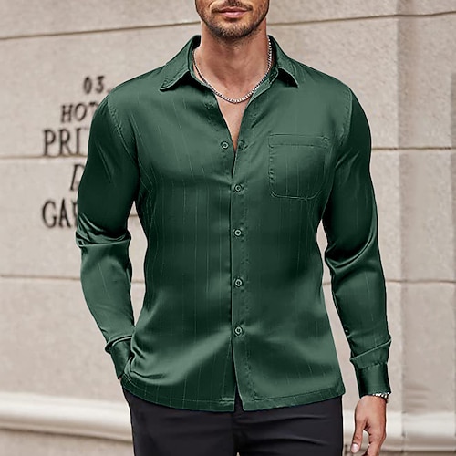 Per uomo Camicia Camicia in raso Camicia elegante Camicia con Bottoni Camicia da Ballo A righe Affari Matrimonio Blu chiaro Nero Bianco Vino Manica Lunga Colletto a Camicia Tutte le stagioni