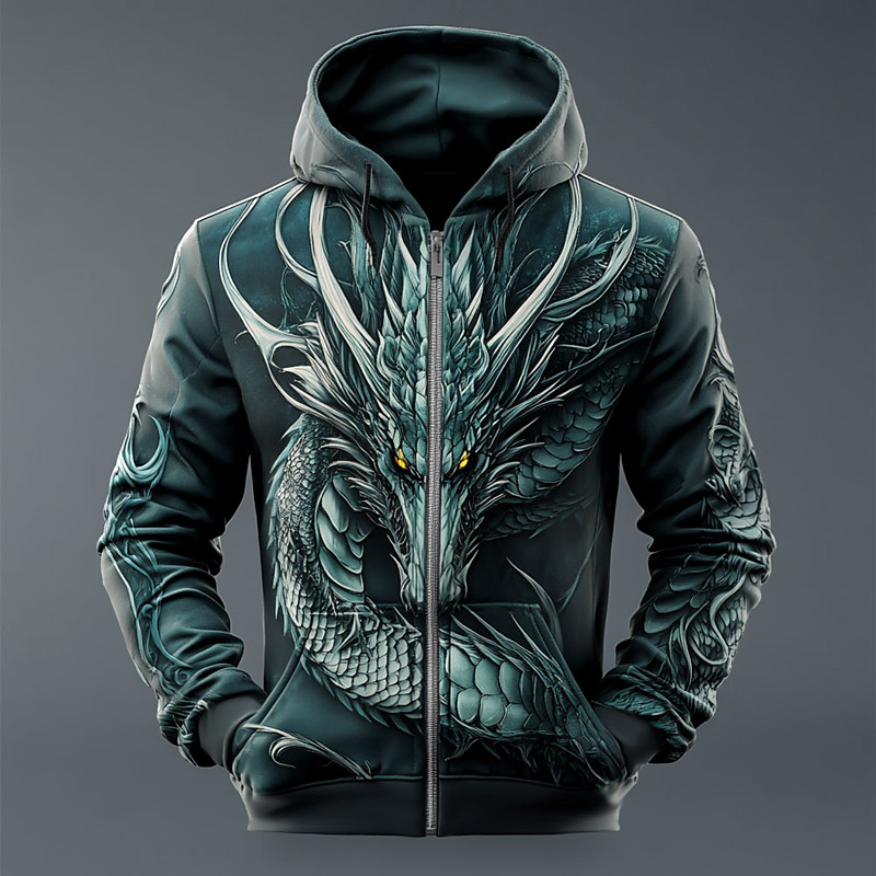 Men's Hoodie Blue Hooded Dragon 3D Print Cool Fall Winter Clothing Apparel Hoodies Sweatshirts