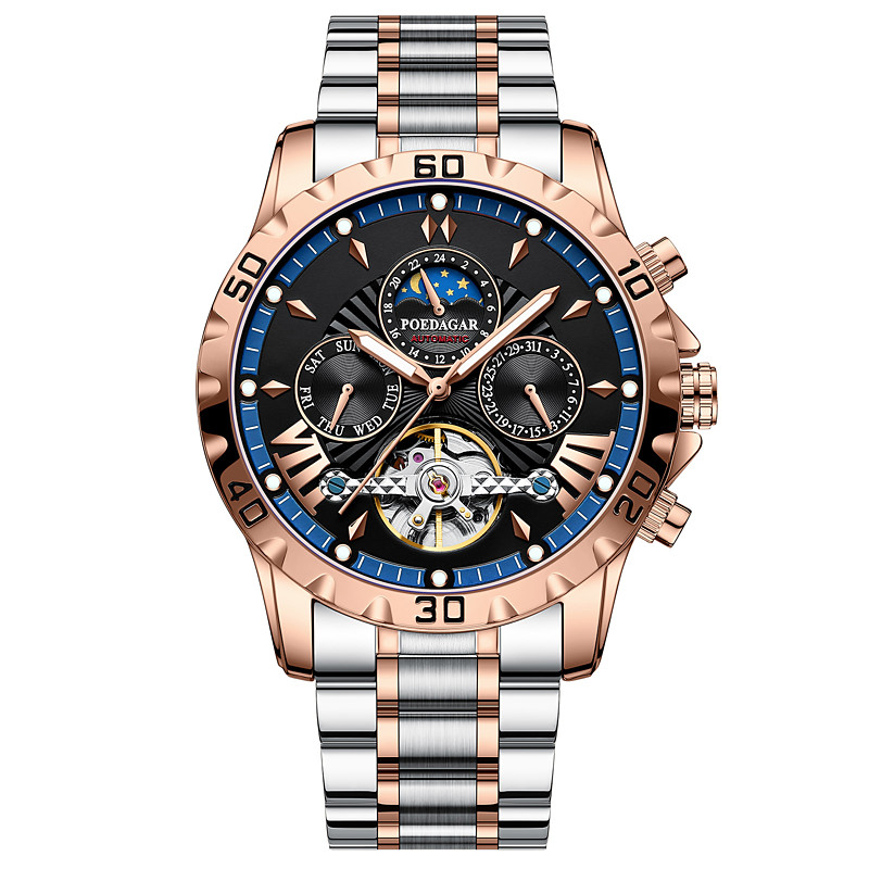 Luxury Automatic Mechanical Watch for Men, Hollow Tourbillon, Waterproof, Luminous, Date Week, Stainless Steel