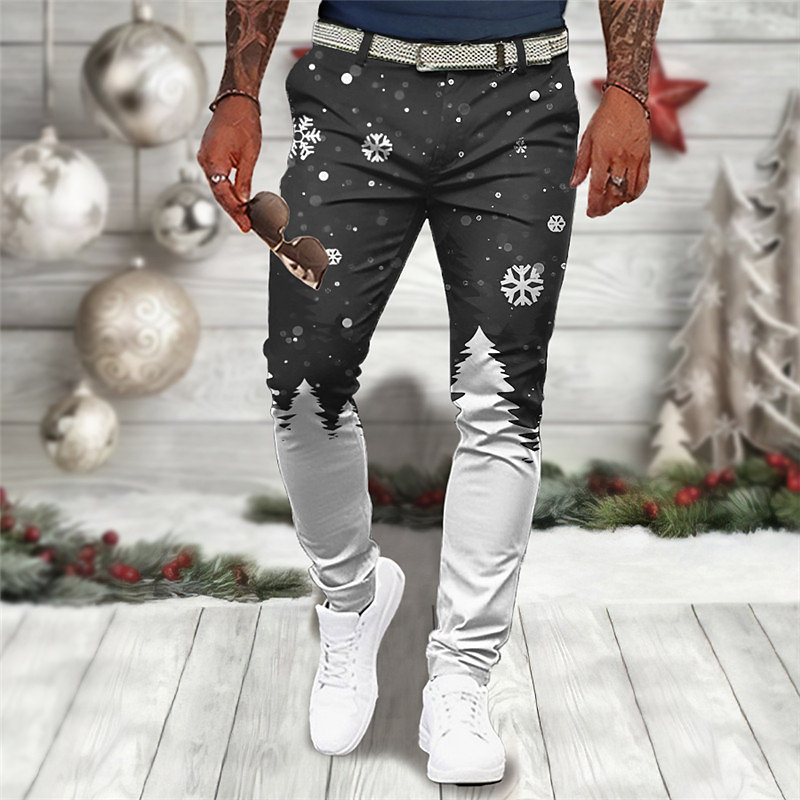 Christmas Men's Christmas Scene Printed Pants Snowflake Business Casual 3D Print Dress Trousers Outdoor Daily Wear Streetwear Polyester Wine Blue Green S M L Medium Waist Elasticity Pants