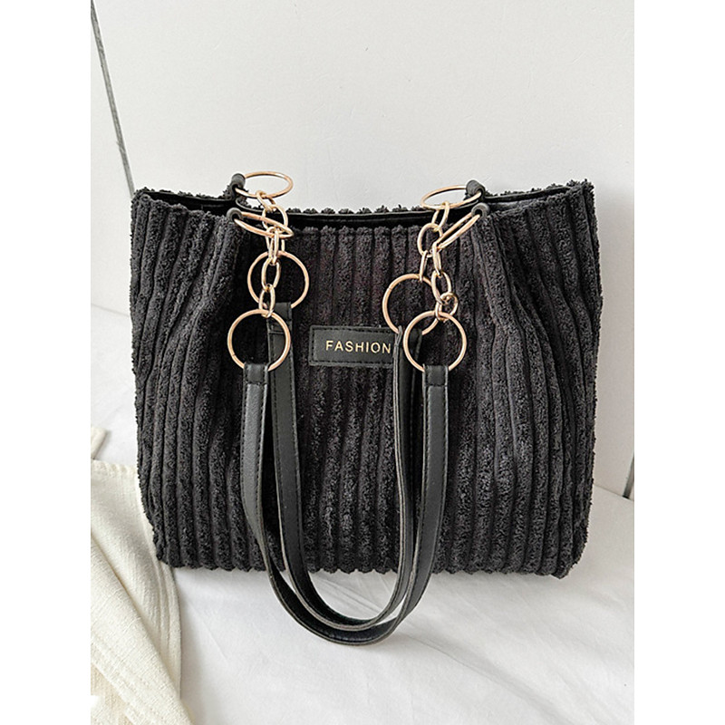Women's Corduroy Tote Shoulder Bag with Leather Straps, Casual Large Capacity Handbag for Shopping, Travel, Work and Daily Use