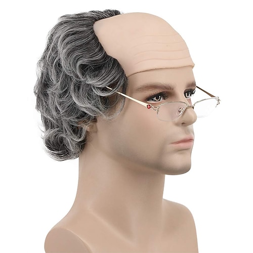 parrucca corta riccia adatta a berretto calvo da vecchio scienziato pazzo grigio parrucca da carnevale cosplay parrucca da festa in costume anime