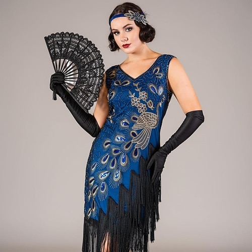Anni Ruggenti Anni 1920 Mini Abito Flapper Vestito Abito da cocktail Senza maniche Il grande Gatsby Paillettes Scollo a V profondo Costume Per donna Natale Carnevale Mascherata Festa a tema retr