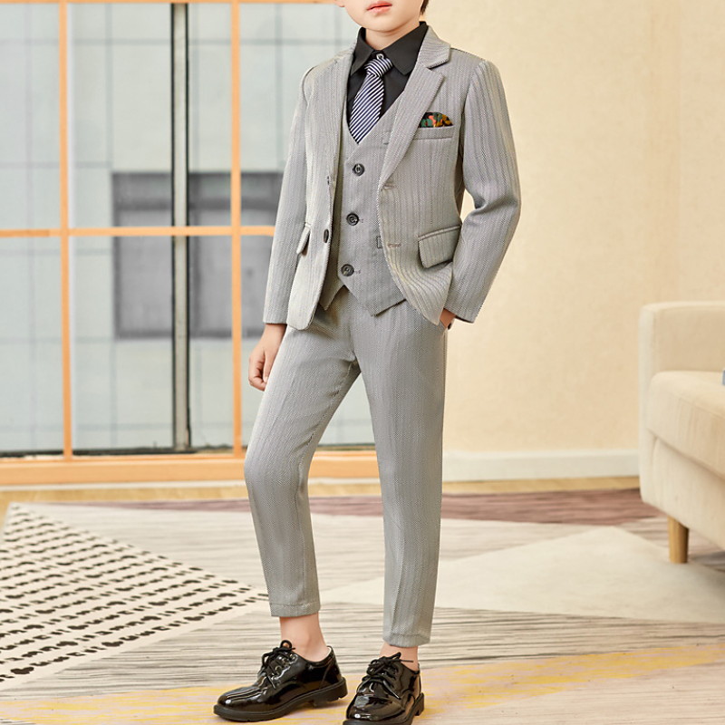 2 Pieces 4 Pieces Ring Bearer Suit Boys Kids Suit Formal Suit Suit Blazer Clothing Set Formal Outdoor Fashion Formal Solid Color Stripe V Neck Black Gray Polyester