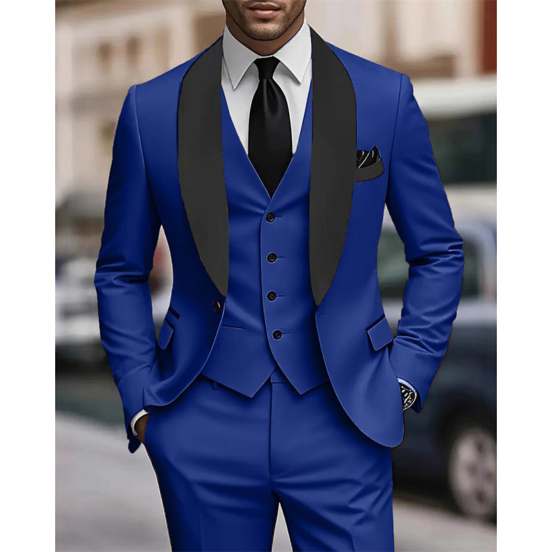 Men's BlazerVestDress Pants Blazer Business Work Wedding Fashion Streetwear Fall Winter Terylene Plain 3-Piece Single Breasted Blazer Black Champagne Pink khaki
