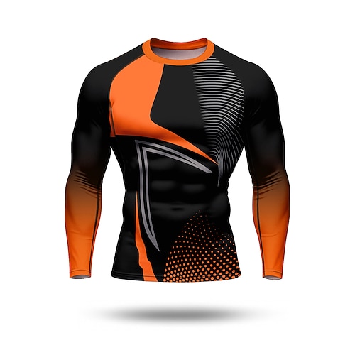 Per uomo T-shirt da corsa Maglia a compressione Maglia da corsa Stampa 3D Manica Lunga Livello Base Geometrico Asciugatura Rapida Compressione Elasticizzato Traspirante Allenamento in Palestra