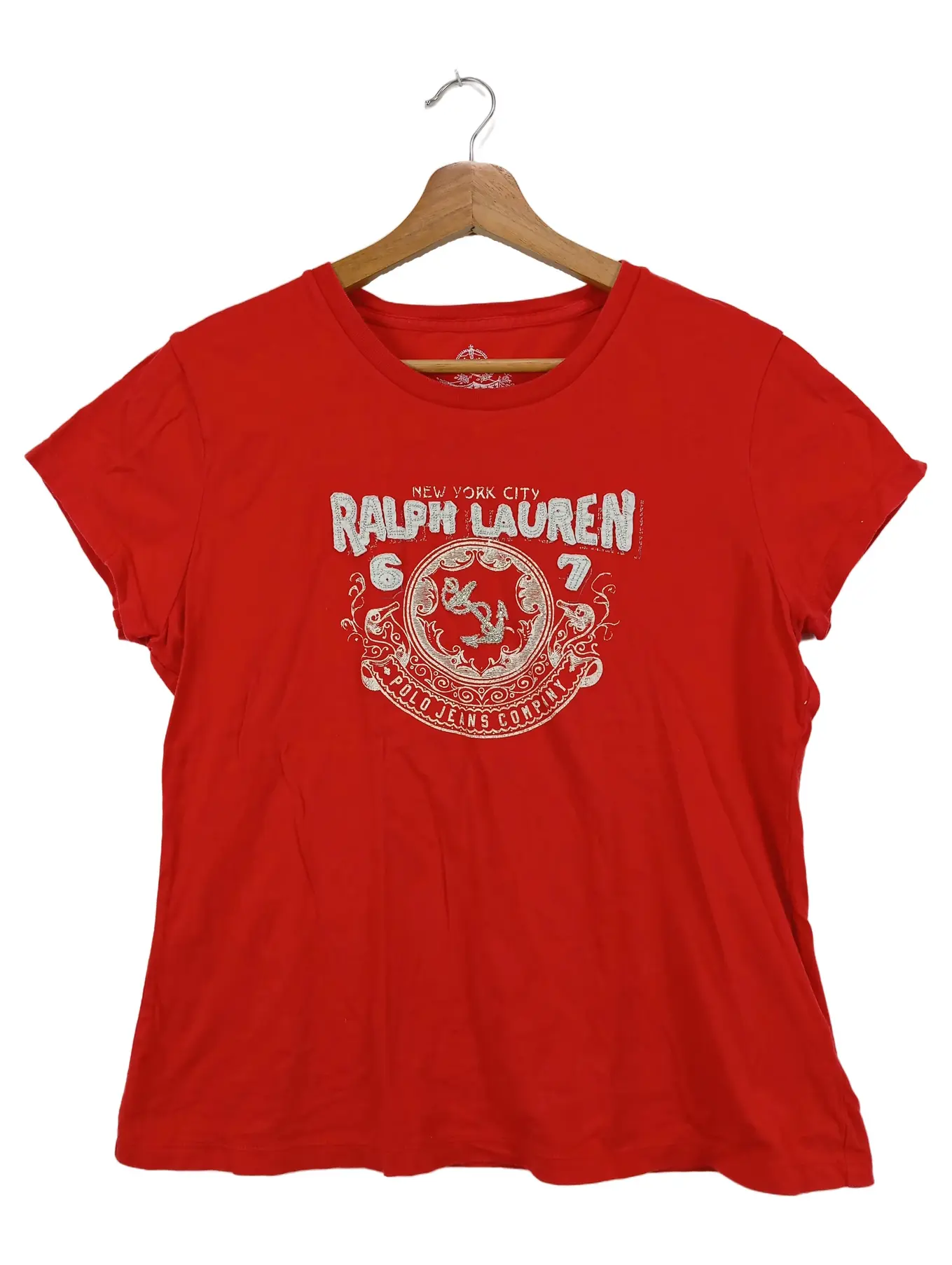 POLO RALPH LAUREN T-Shirt L Rot Grafikdruck Damen