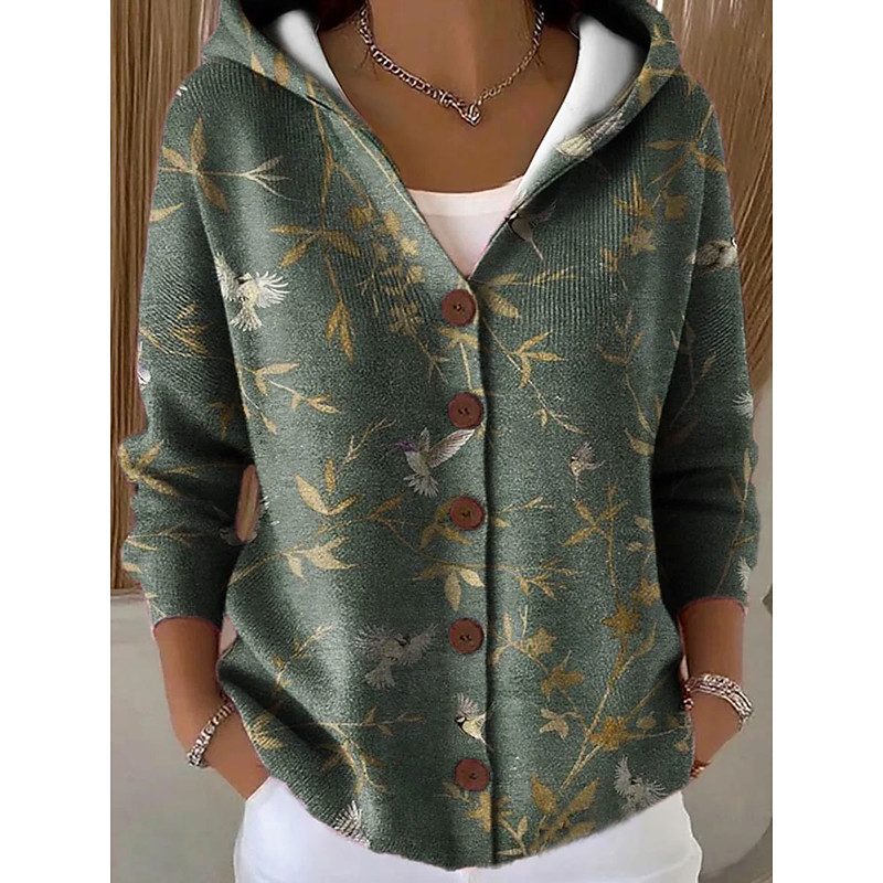 Women's Cardigan Fashion Daily Casual Floral Graphic Ribbed Crew Neck V Neck Hooded Floral Buttons Print Long Sleeve Regular Tops Knit Outdoor Daily Date Green Spring Fall