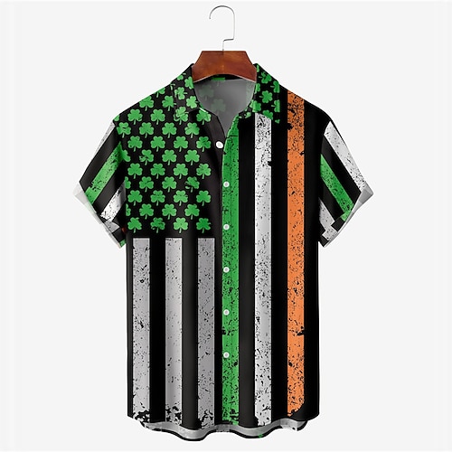Bandiera Informale Per uomo Camicia Da tutti i giorni Per uscire Fine settimana Autunno Collo ripiegabile Maniche corte Verde S, M, L Tessuto elasticizzato a 4 vie Camicia San Patrizio