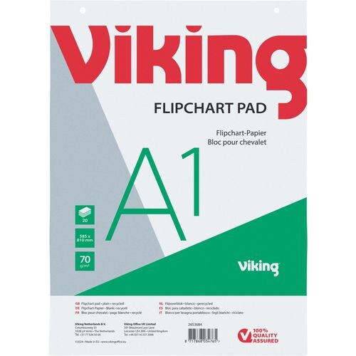 Viking Recycling Flipchart-Papier Blanko DIN A1 20 70 g/m² 5 Stück à 20 Blatt