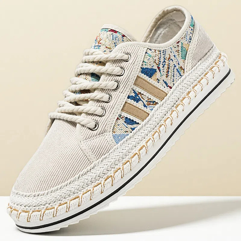 Men's Beige Walking Shoes with Colorful Woven Detailing – Comfortable and Durable Sneakers for Casual and Travel Wear