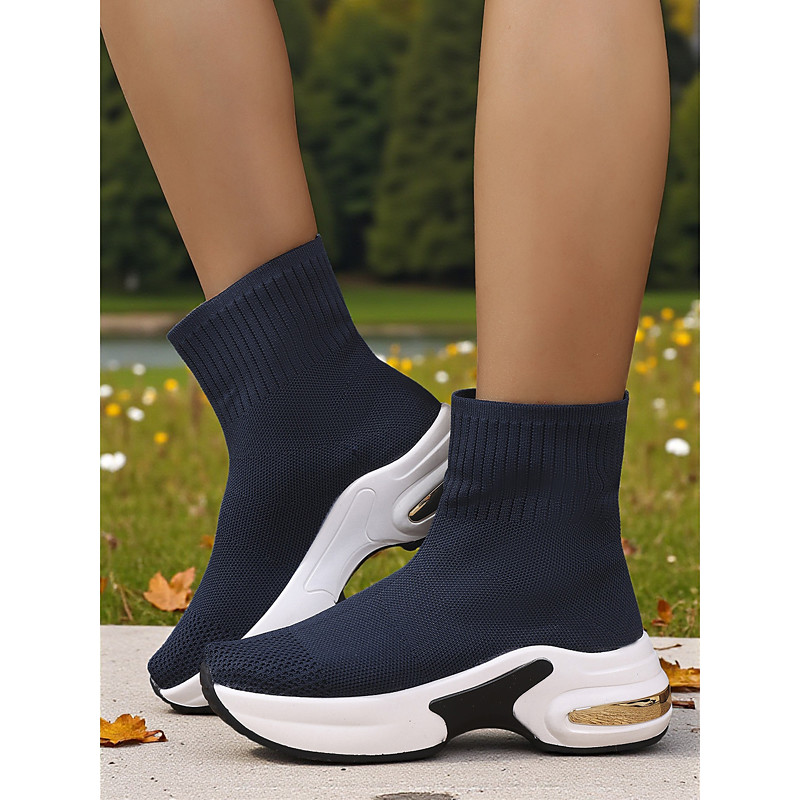 Women's Beige Flyknit Sock Boots with Platform Sole – Lightweight Casual Walking Shoes for Outdoor, Travel and Sports