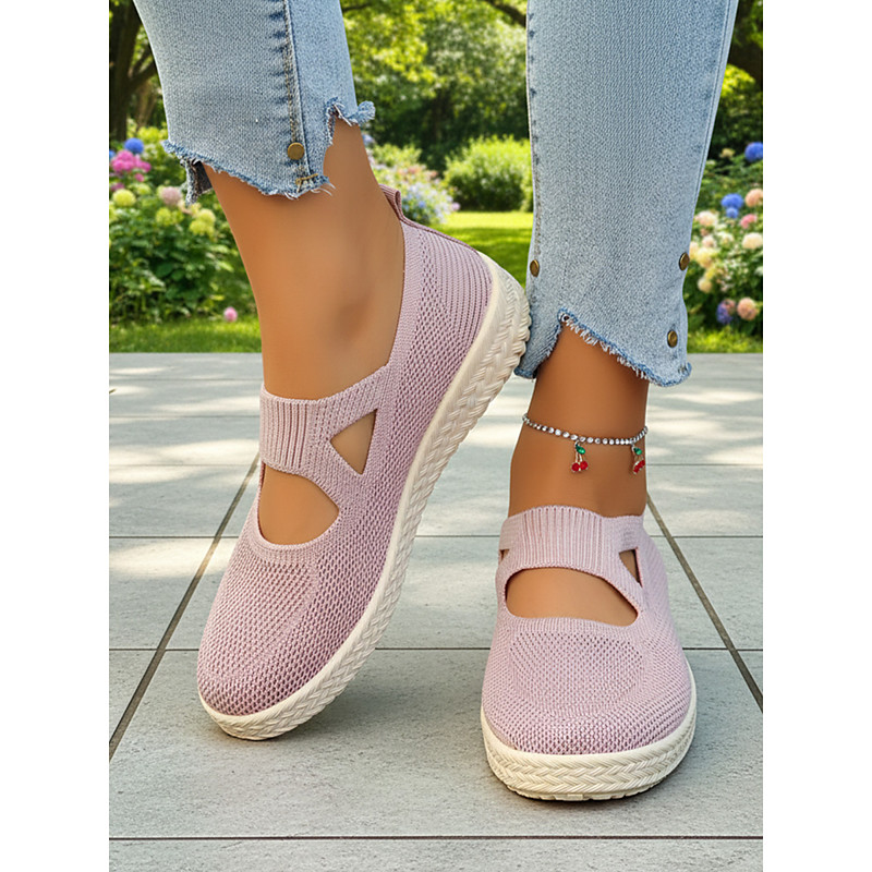 Women's Pink Lightweight Knitted Slip-On Sneakers, Breathable Athleisure Flats for Yoga, Gym, Travel Comfort Daily Wear