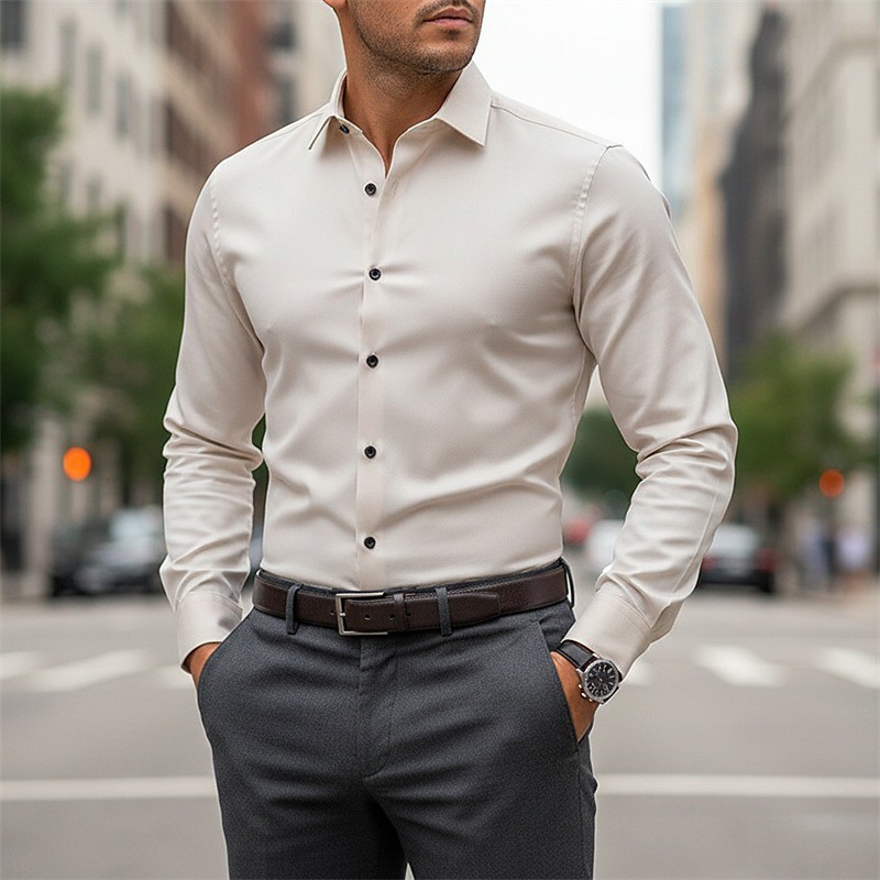 Men's Dress Shirt Button Up Shirt Plain Work Wedding Black White Light Green Pink Long Sleeve Turndown All Seasons Clothing Apparel Basic
