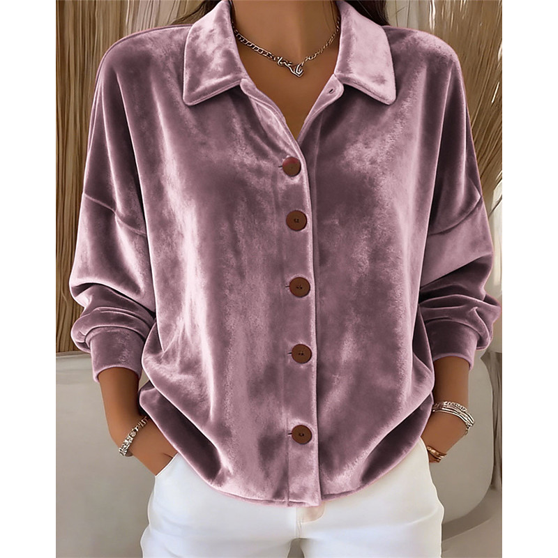 Women's Velvet Blouse Dressy Tops Plain Elegant Vintage Ladies Long Sleeve Shirt Collar Long Tops Daily Work Holiday Ruched Patchwork Buttons Maroon Light Purple Purple Brown Green Winter