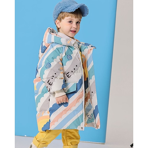 Bambini Ragazzi Giacca in piuma Giacca con Cappuccio Giacca Imbottita Capispalla Grafico Manica Lunga Tenere al caldo Antivento Cappotto Casuale Quotidiano Essenziale Blu Bianco Blu marino Autunno