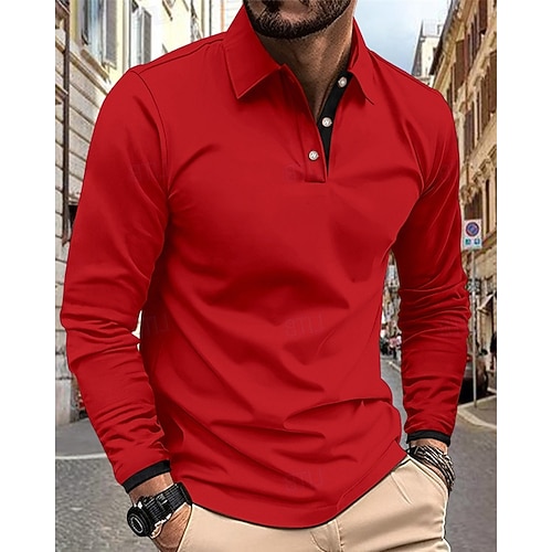 Per uomo Maglia da golf Polo da Golf Lavoro Casuale Bavero Manica Lunga Essenziale Moderno Semplice Bottoni Primavera Autunno Vestibilità regolare Nero Bianco Rosso Blu marino Arancione Maglia da
