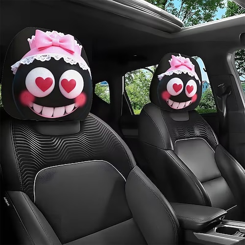 2 copri poggiatesta con stampa a forma di cuore e fiori, protezione per poggiatesta auto con bambina dagli occhi a cuore, decorazione per interni, senza imbottitura, facili da installare e lavare,
