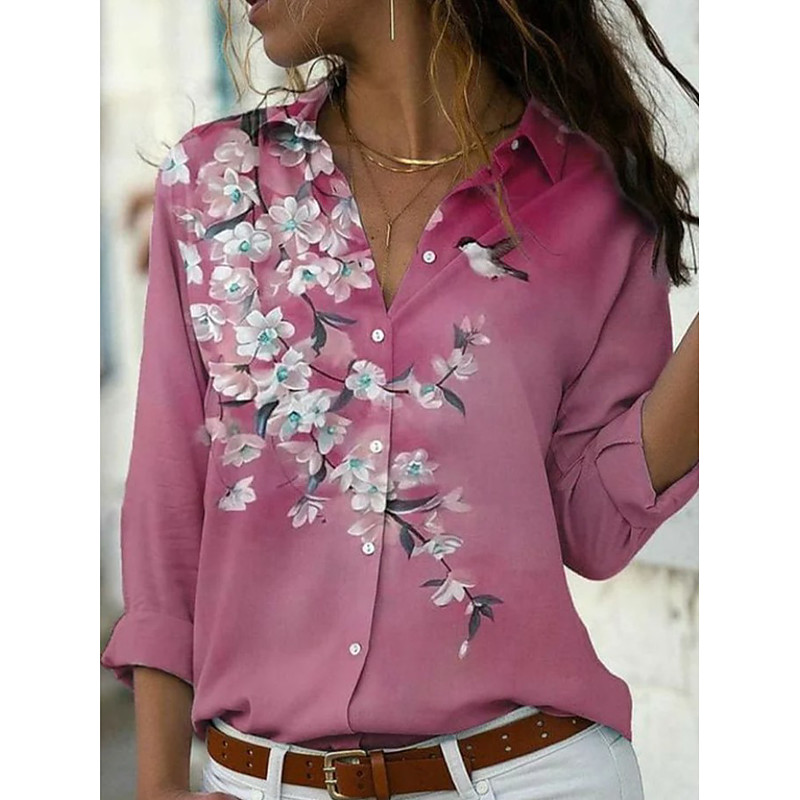 Women's Shirt Floral Graphic Elegant Bohemia Daily Long Sleeve Shirt Collar Regular Tops Daily Holiday Buttons Print White Pink Light Purple Purple Orange Spring Fall Winter