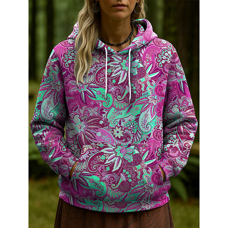Women's Pullover Hoodie Sweatshirt Floral Graphic Paisley Casual Long Sleeve Hooded Regular Tops Party Evening Wear Street Dailywear Pink Blue Orange Green Spring Fall Winter