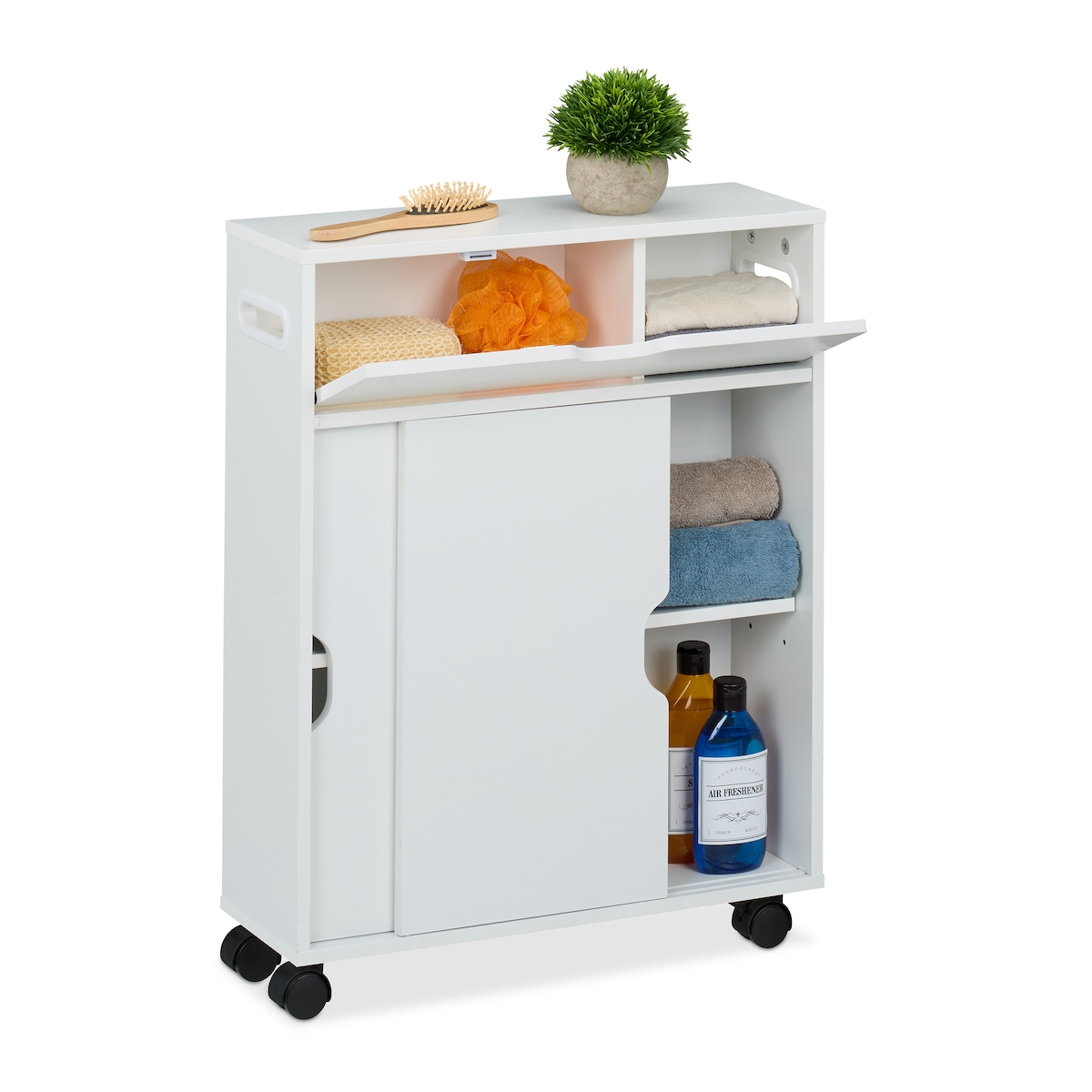 Relaxdays Nischenwagen, Schiebetüren, HBT: 67 x 17 x 52 cm, Bad und Küche, MDF, schmaler Rollwagen, mit Griffen, weiß