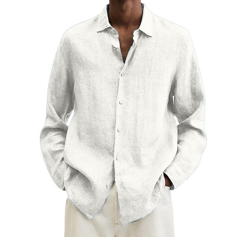Men's Cotton Linen Shirt Black Pink Navy Blue Long Sleeve Plain Turndown Vacation Holiday Clothing Apparel Polyester Fashion Casual