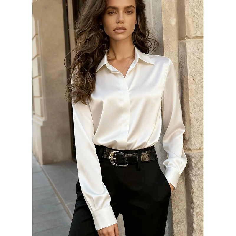 Women's Shirt Elegant Dressy Satin Plain Daily Long Sleeve Shirt Collar Regular Tops Blue Black White Gray Fall