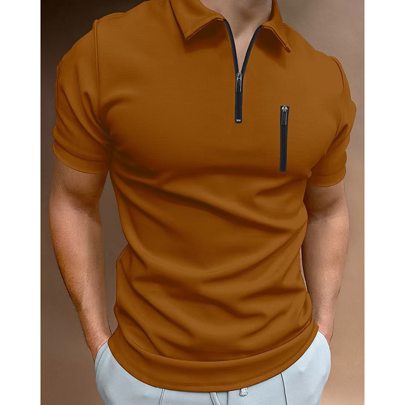 Men's Waffle Polo Shirts Zip Polo Casual Holiday Quarter Zip Short Sleeve Fashion Basic Plain Quarter Zip Summer Spring All Seasons Black White Navy Blue Orange Waffle Polo Shirts
