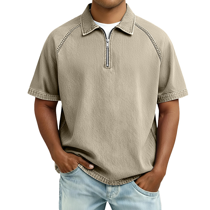 Men's Quarter Zip Polo Golf Shirt Work Casual Quarter Zip Short Sleeve Basic Modern Plain Zipper Summer Regular Fit Black White Pink Navy Blue Sky Blue Khaki Quarter Zip Polo