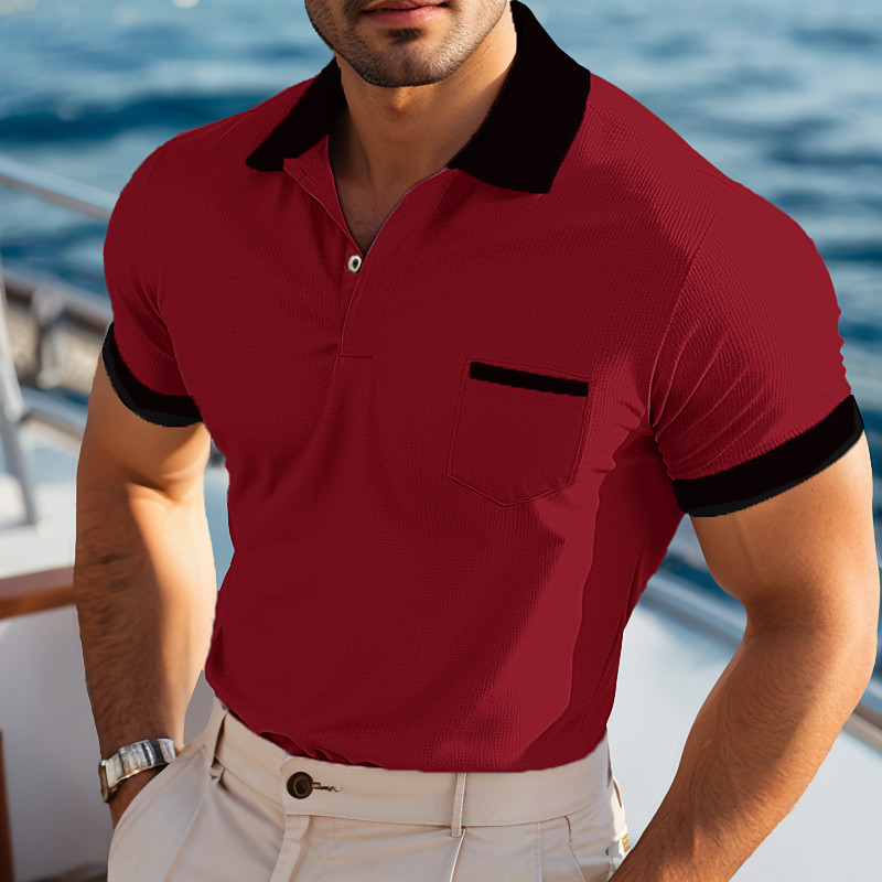 Men's Business Polo Golf Shirt Business Casual Lapel Classic Short Sleeve Color Block Buttons Summer Spring Fall Dark Brown Yellow Burgundy Navy Blue Mint Green Light Grey Business Polo
