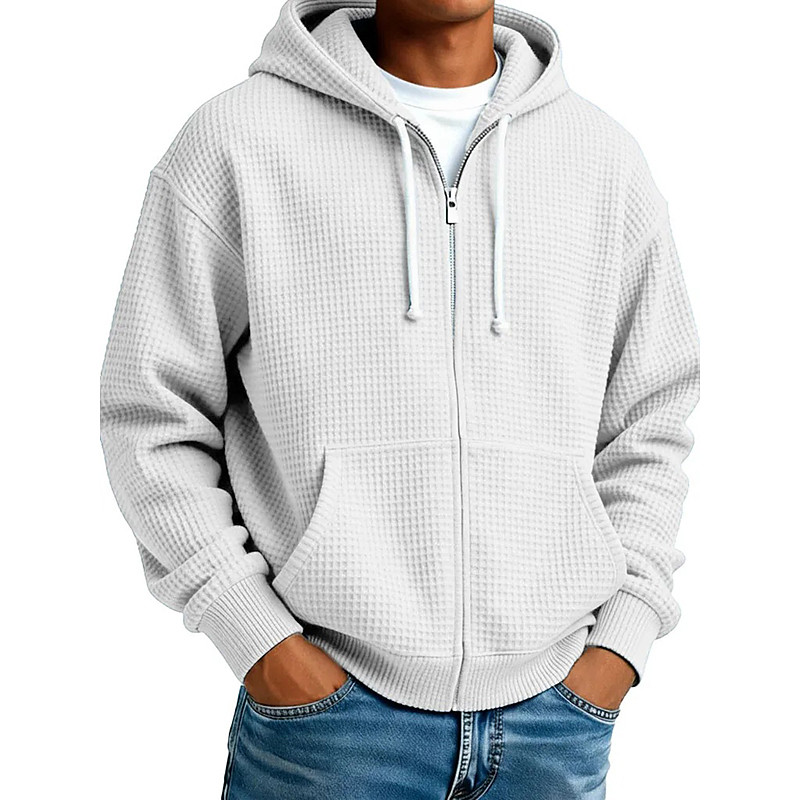 Men's Hoodie Full Zip Hoodie Waffle Hoodies Apricot Black White Light Green Army Green Hooded Plain Textured Sports Outdoor Casual Daily Streetwear Cool Sportswear Spring Fall Fall Winter