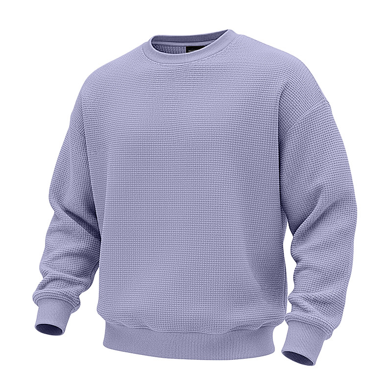 Men's Sweatshirt Waffle Sweatshirt Pullover Hoodie Sweatshirt Apricot White Light Green Navy Blue Purple Crew Neck Plain Textured Casual Daily Sports Outdoor Streetwear Cool Sportswear Spring