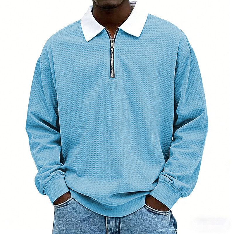 Men's Waffle Polo Shirts Polo Vacation Street Quarter Zip Long Sleeve Fashion Basic Color Block Patchwork Spring Fall Regular Fit Black Army Green Purple khaki Grey Light Blue Waffle Polo Shirts