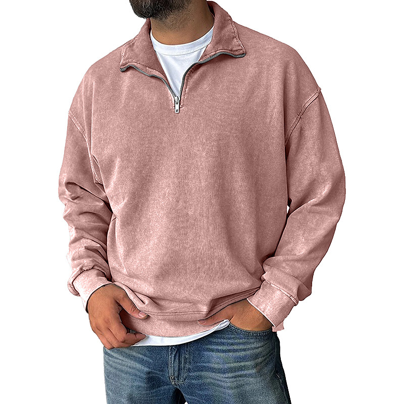 Men's Sweatshirt Pullover Quarter Zip Sweatshirt Black Light Green Pink Navy Blue Dark Green Standing Collar Plain Half Zip Casual Daily Sports Outdoor Vintage Streetwear Cool Spring Fall