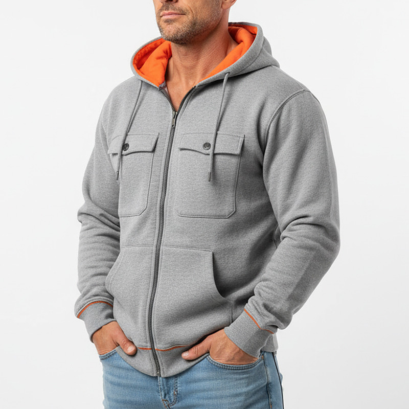 Men's Hoodie Full Zip Hoodie Fleece Hoodie Tactical Hoodie Light Grey Dark Gray Hooded Plain Zipper Color Block Casual Daily Sports Outdoor Cool Sportswear Casual Spring Fall Fall Winter