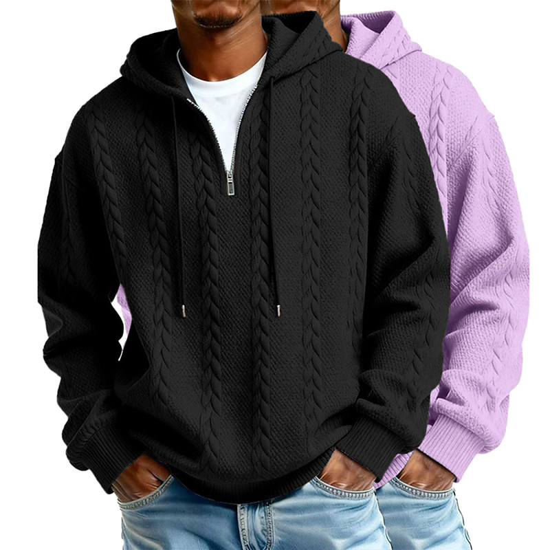 Men's Jacquard Hoodie Quarter Zip Hoodie ApricotGray Light BlueBlack WhiteLight Gray Light GreenNavy Blue Light BluePurple Hooded Plain Textured Casual Daily Sports Outdoor Streetwear Cool