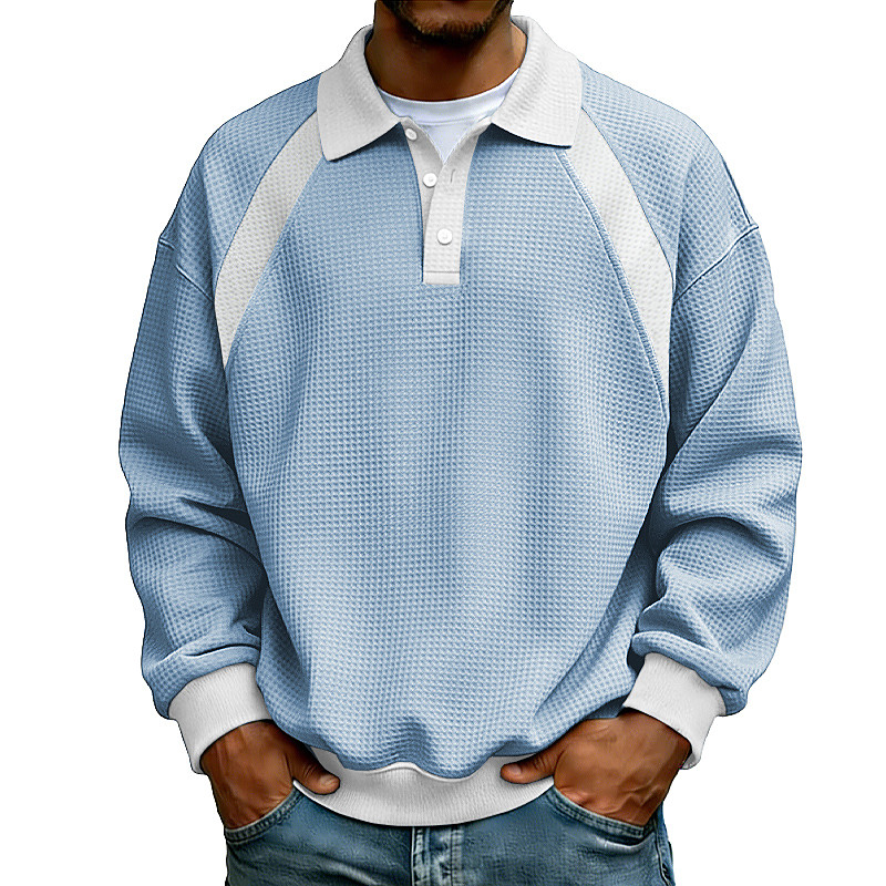 Men's Waffle Polo Shirts Polo Shirts Casual Street Lapel Long Sleeve Basic Modern Color Block Patchwork Buttons Spring Fall Regular Fit Black Light Green Navy Blue Gray Light Blue Waffle Polo Shirts