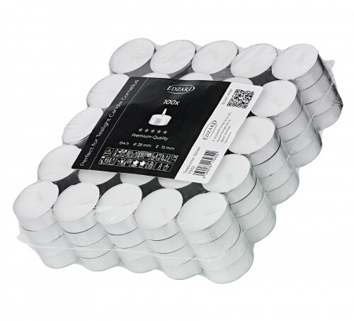 EDZARD 100 Stück Teelichter weiß, Premium Wachs, Alu-Cup, Durchmesser 39mm, ohne Duft, Brenndauer 4 Stunden